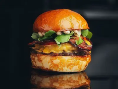 Hovězí maso 160 g, gratinovaný sýr Raclette, Mama's slaninový Jam, jalapeños, smoky mayo 1. Obiloviny obsahující lepek